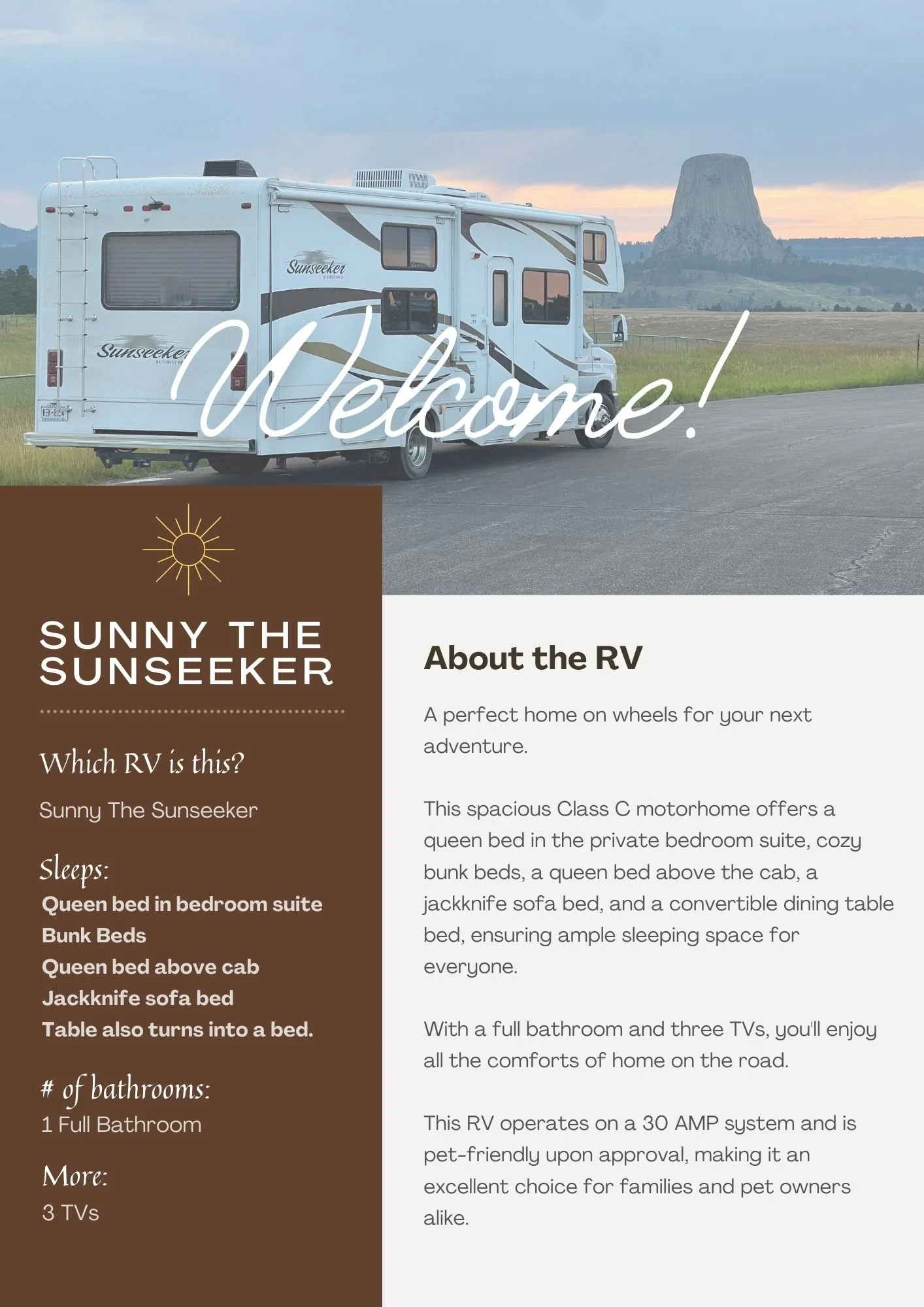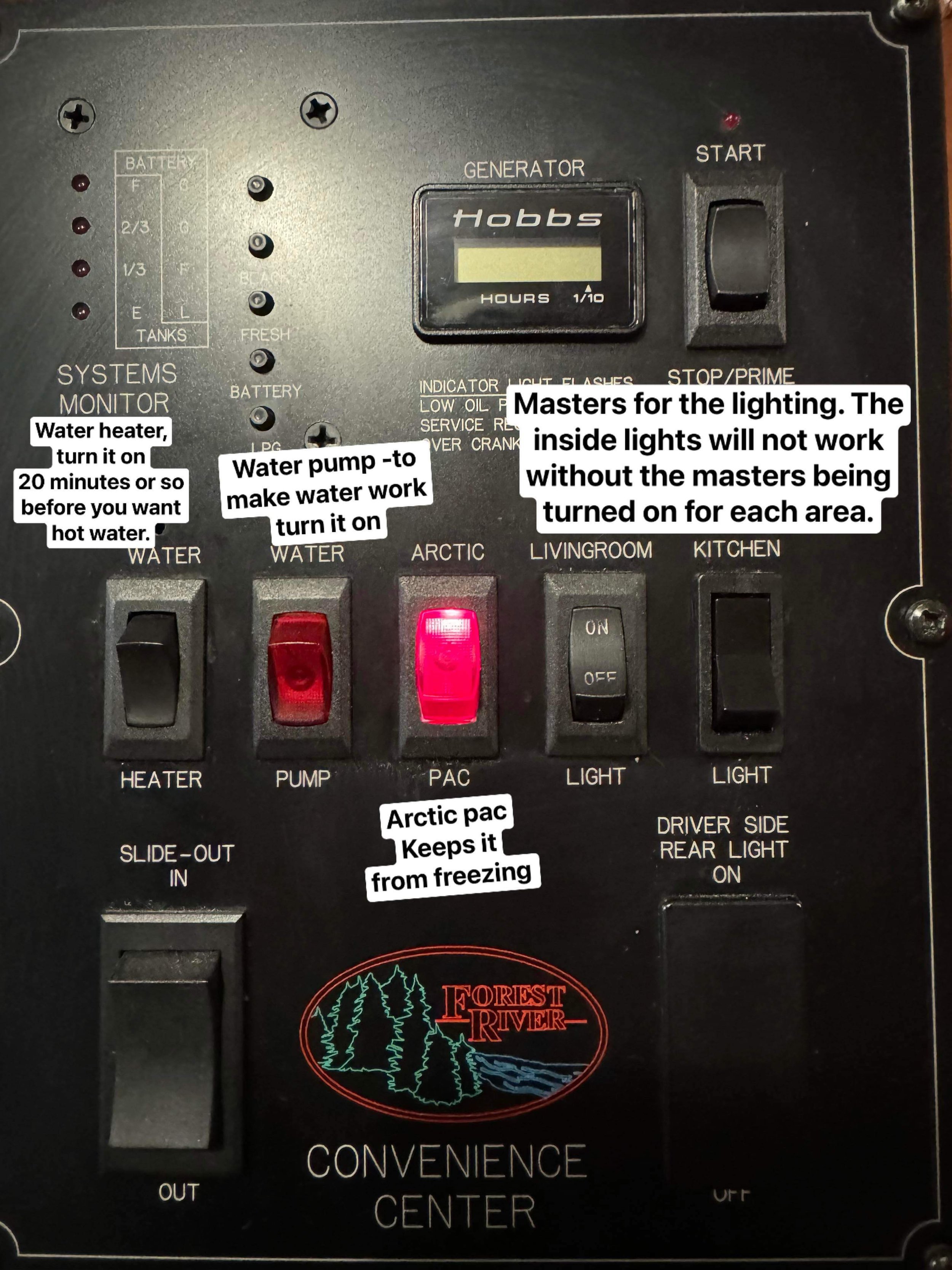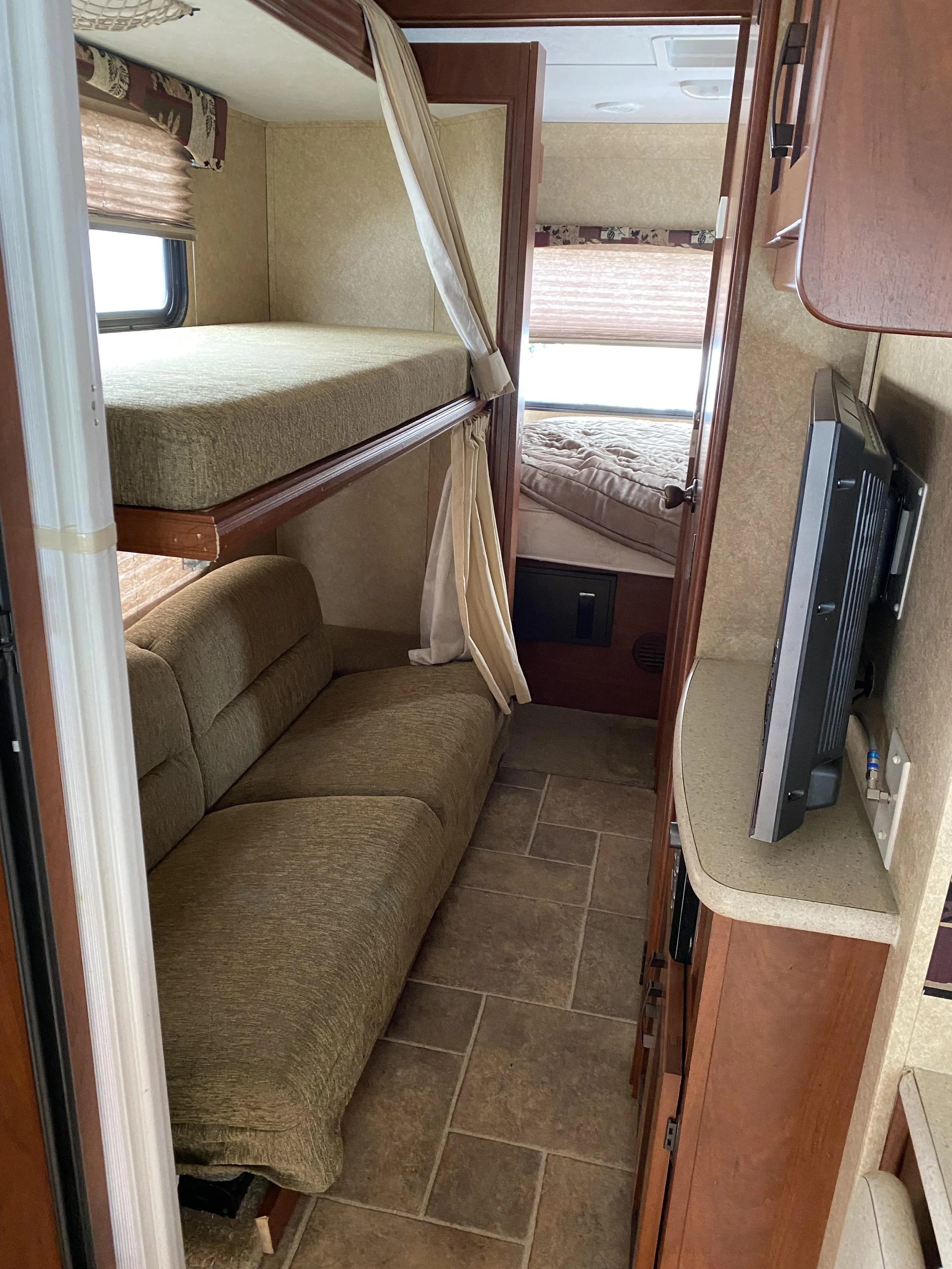 Sunny The Sunseeker! Living Room - Slide Closed Queen Bedroom Bunks and Hallway - Slide Closed Master Panel Lights/Thermostat/Slide Bathroom